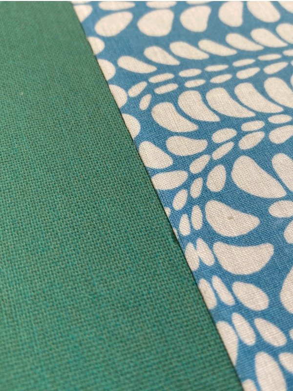 Podés elegir hojas lisas, si preferís un espacio abierto para bocetar o explorar sin límites, o hojas rayadas si te gusta escribir con una guía que sostenga el trazo. Las tapas están cubiertas en telas de algodón estampadas combinadas con tela de encuadernación, y las guardas son de papel Royal Sundance de 120 g, un material firme y agradable al tacto.