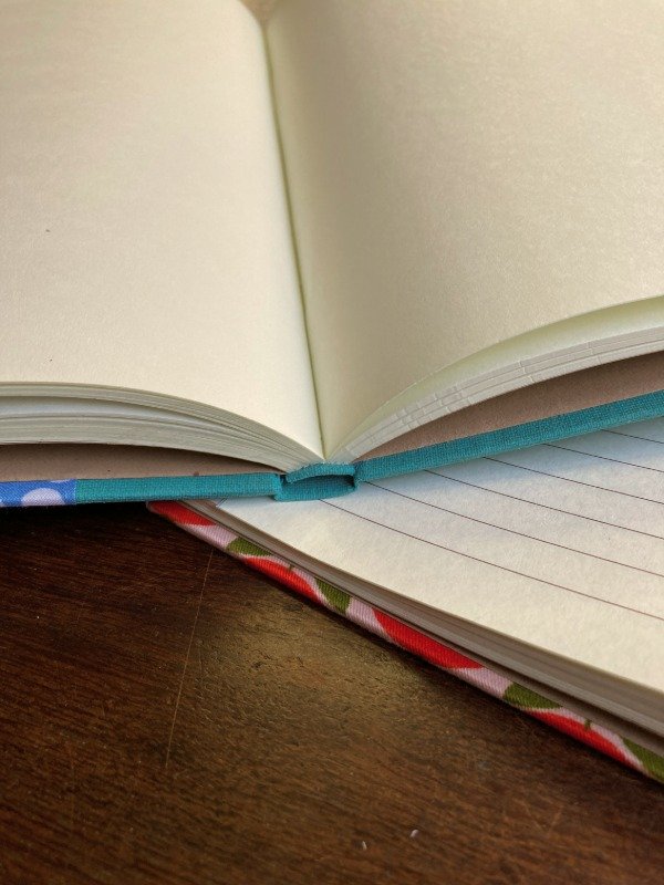 Cuaderno A5 (15 × 21 cm aprox.) · 80 hojas color ahuesado (bookcel) lisas o rayadas · Lomo redondeado · Apertura 180° · Tapas duras forradas en telas de algodón.