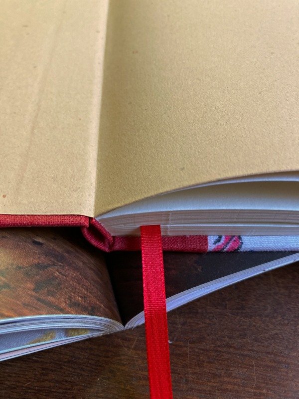 Este cuaderno está hecho a mano desde cero. Trabajo cada etapa con atención al detalle para lograr buenas terminaciones y uso materiales que te permitan tener entre las manos un objeto para atesorar. Los lomos están redondeados y la apertura llega a 180°, algo que siempre valoro porque hace que escribir sea cómodo desde la primera página.