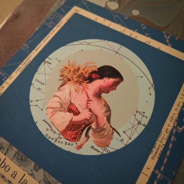 Postal diseñada con collage digital. Impresa en papel fotográfico mate texturado 250gr