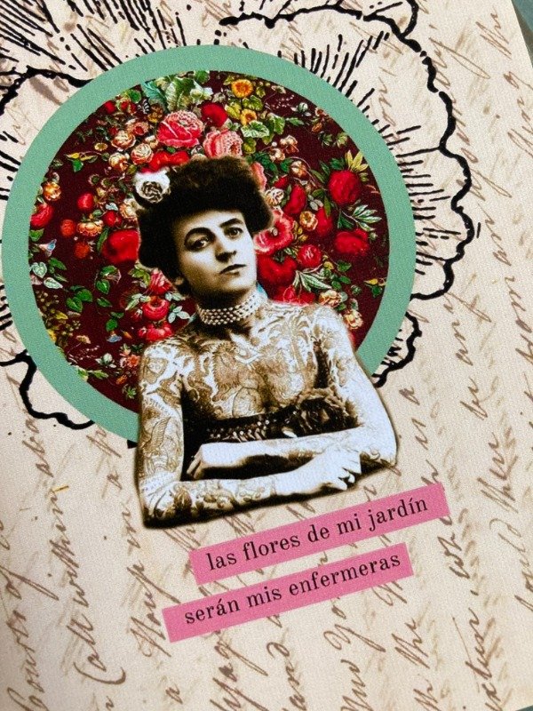 Postal diseñada con collage digital. Impresa en papel fotográfico mate texturado 250gr